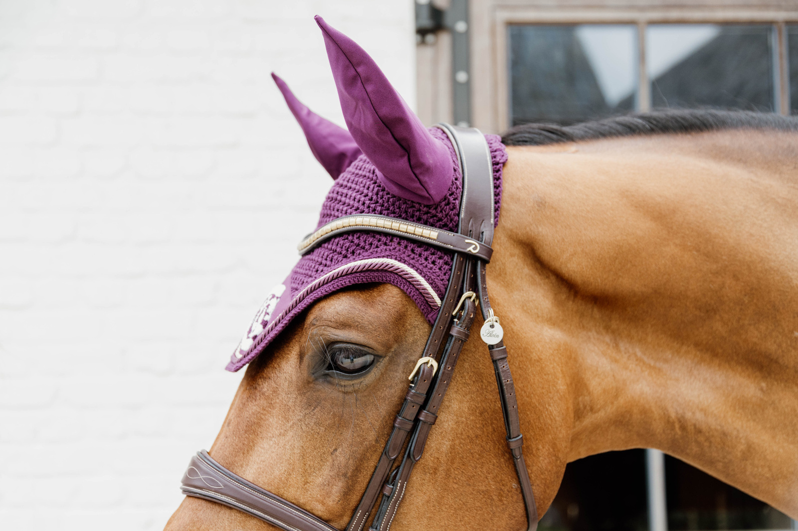 Nauszniki wykonane są z gęstej, starannie dzianej tkaniny, która cechuje się wysoką trwałością i estetycznym wyglądem nawet przy intensywnym użytkowaniu. Część uszna została uszyta z elastycznego materiału, który idealnie dopasowuje się do kształtu uszu konia, nie uciska i nie ogranicza naturalnego ruchu, a jednocześnie skutecznie blokuje owady.