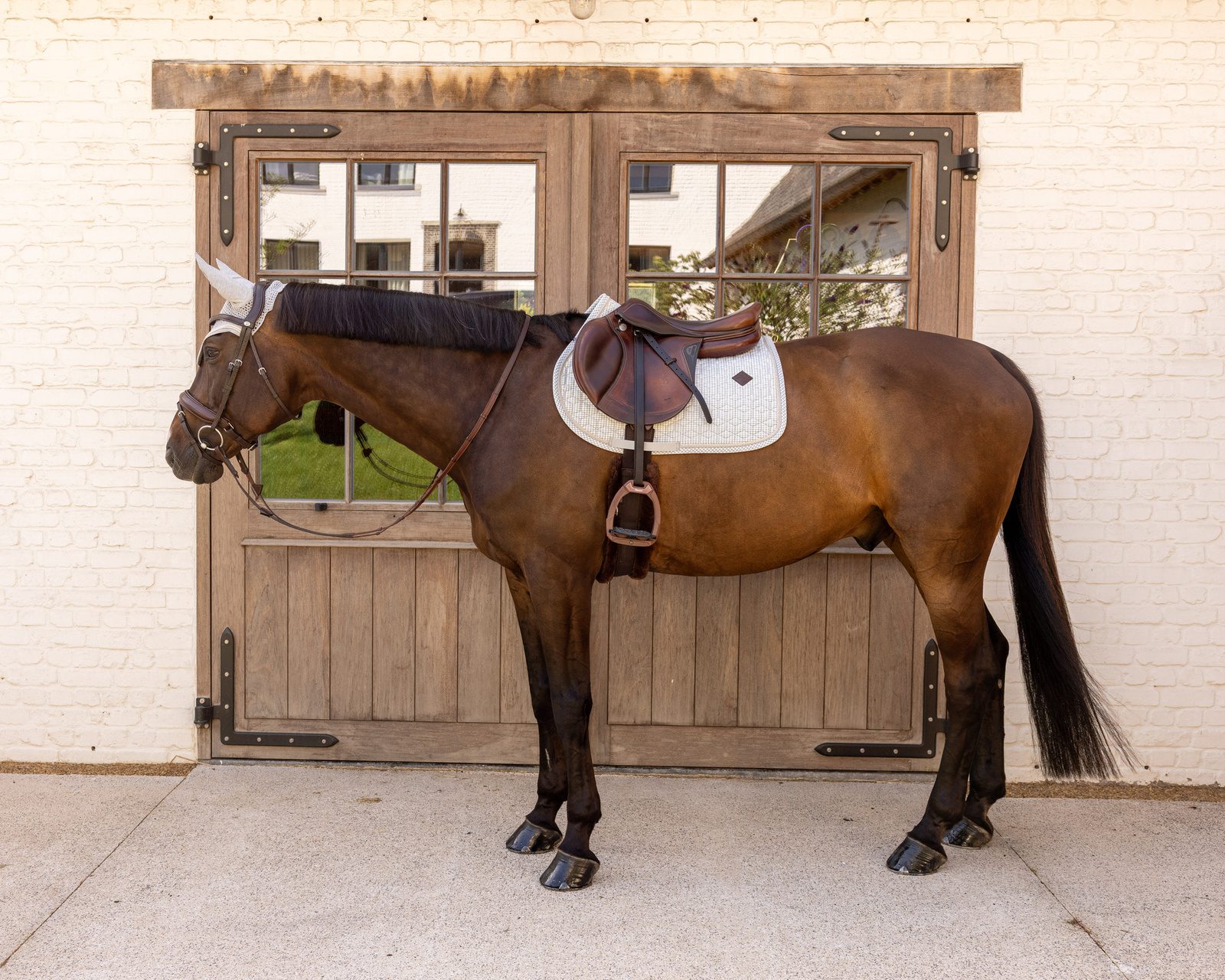Materiał dopasowuje się do kształtu głowy konia i nie powoduje przegrzewania nawet podczas intensywniejszego wysiłku. Elastyczne uszy zostały uszyte tak, by dokładnie przylegały, nie uciskały i pozwalały zachować swobodę ruchu.