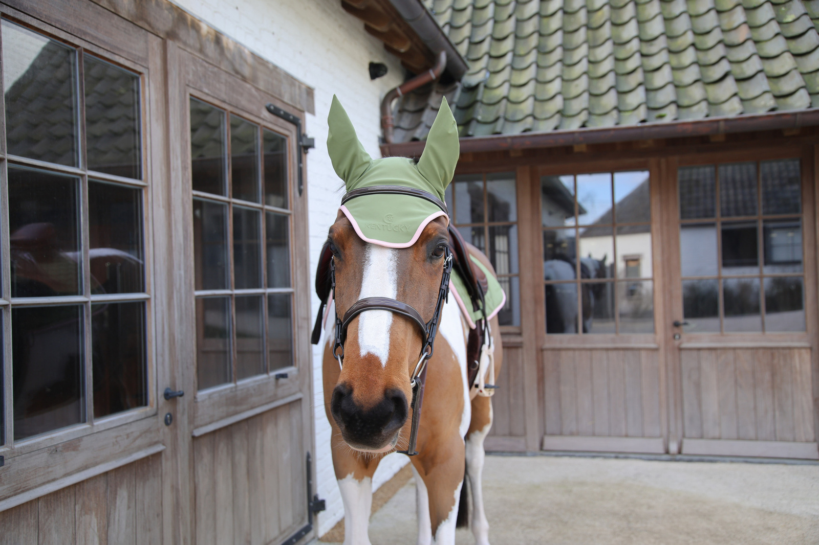 Materiał wokół uszu jest elastyczny i ma smukły krój, dzięki czemu dokładnie przylega, nie uciska i nie ogranicza naturalnego ruchu uszu. To ważne zwłaszcza u koni wrażliwych, które źle reagują na sztywne lub zbyt grube materiały.