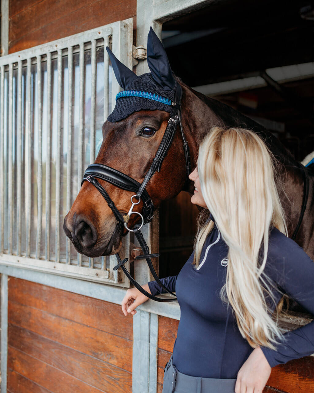 - Materiał na uszach jest elastyczny dla większego komfortu konia.