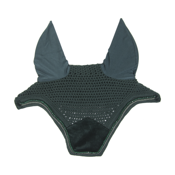 Nauszniki łączą skuteczną ochronę uszu konia z wyjątkowo eleganckim wykończeniem. Welurowe detale zestawione z subtelnymi perełkami nadają im elegancki wygląd, który świetnie prezentuje się zarówno na zawodach, jak i podczas treningów. Jednocześnie model ten spełnia swoją podstawową funkcję – chroni uszy konia przed muchami i innymi owadami, co pomaga ograniczyć rozdrażnienie, potrząsanie głową i napięcie w obrębie szyi.