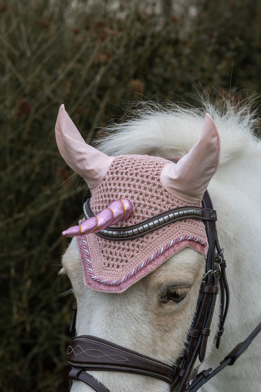 - Bajkowe nauszniki z różowym rogiem jednorożca ozdobionym brokatem, zdecydowanie dodają każdej stylizacji konia wyjątkowego, magicznego charakteru!