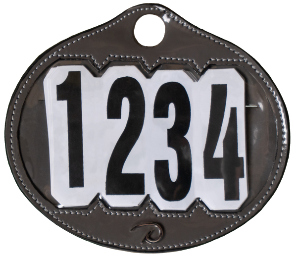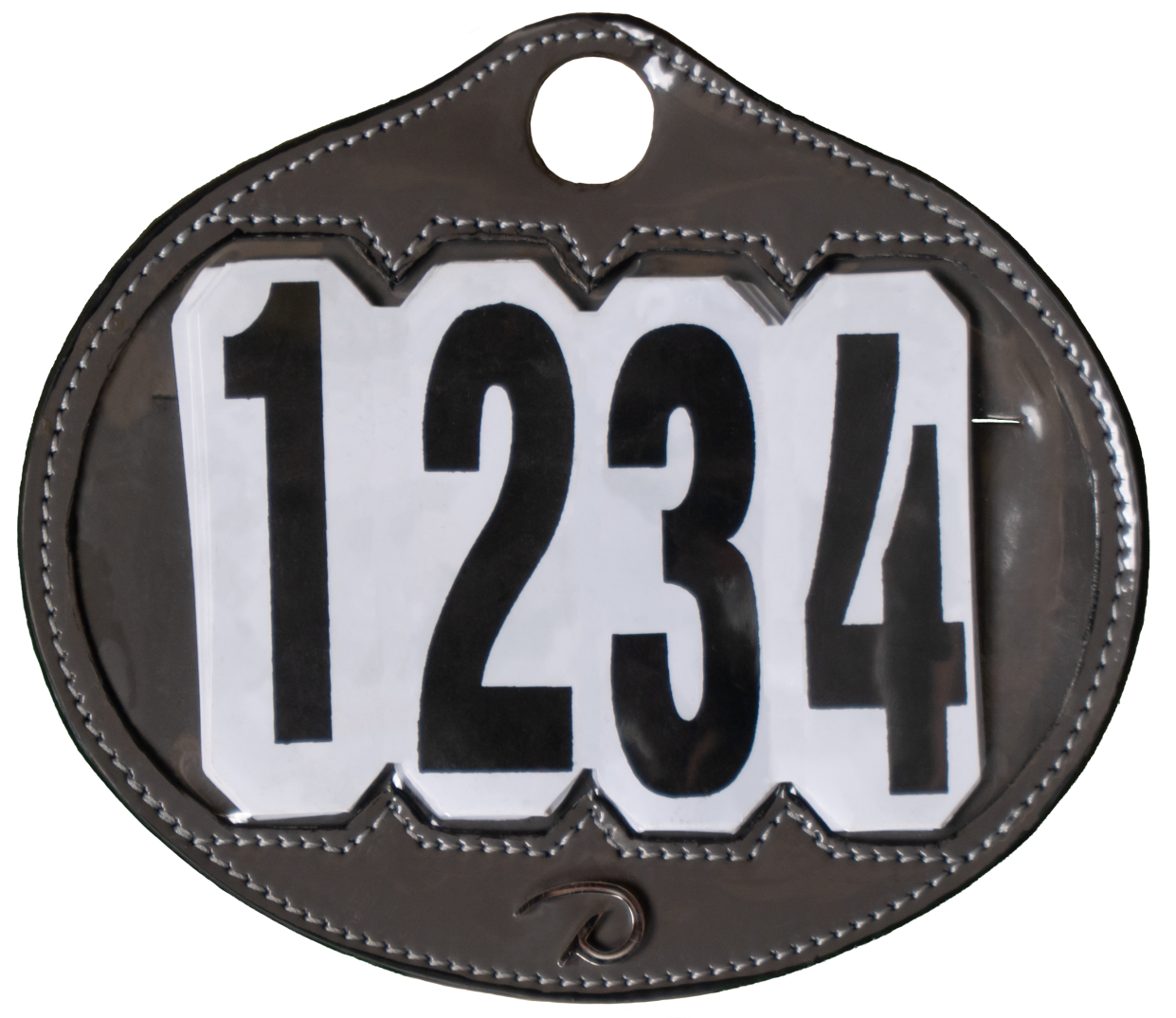 4-cyfrowy numerek startowy wykonany z brązowej ekoskóry.