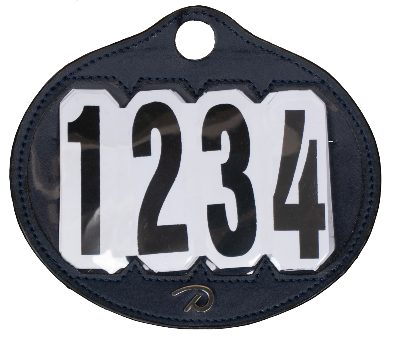 4-cyfrowy numerek startowy wykonany z brązowej ekoskóry.