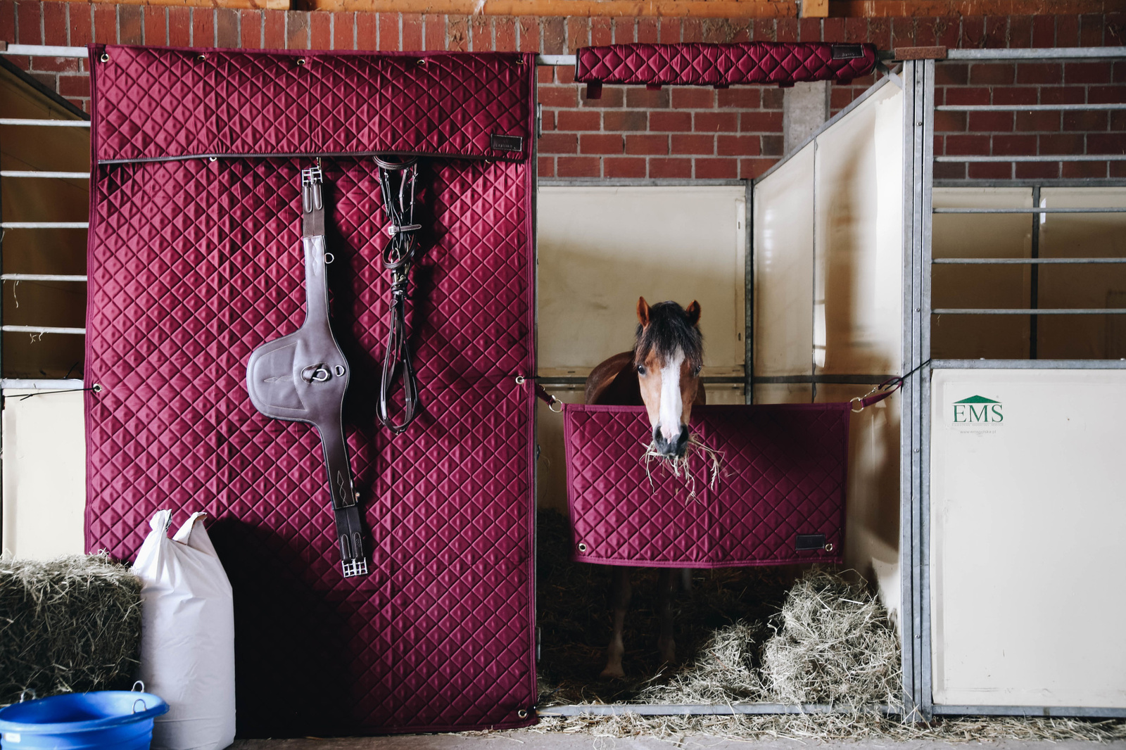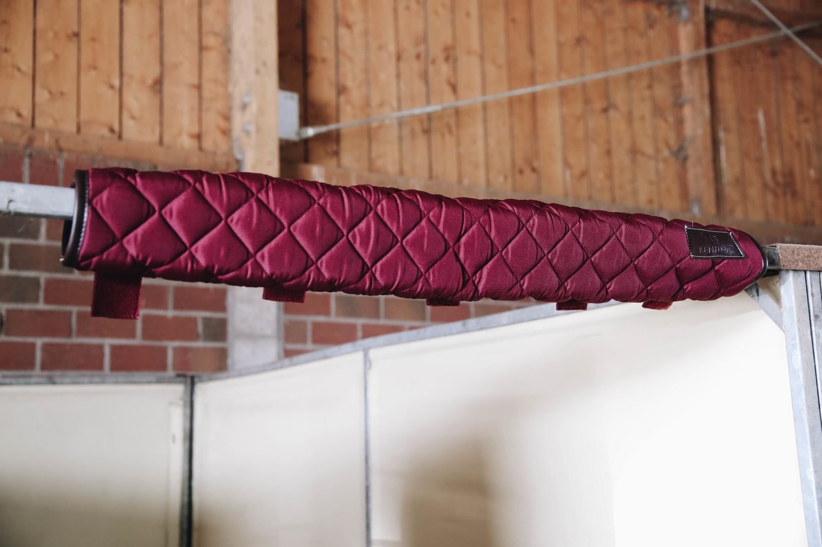 Ochraniacz wykonany jest z niezwykle trwałego, odpornego na uszkodzenia materiału 600D high tenacity polyester, który doskonale znosi codzienne użytkowanie w stajennych warunkach. Luksusowy wygląd panelu uzyskano dzięki pikowaniu w charakterystyczny wzór w romby oraz eleganckim wykończeniom ze sztucznej, brązowej skóry — dokładnie w tym samym stylu, który wyróżnia wszystkie akcesoria stajenne Kentucky. Dzięki temu Head Protector świetnie komponuje się z zasłonami boksowymi Stable Curtain i bramkami Stable Guard, tworząc razem spójny i elegancki zestaw, idealny zarówno do prywatnych stajni, jak i na wyjazdy konkursowe.