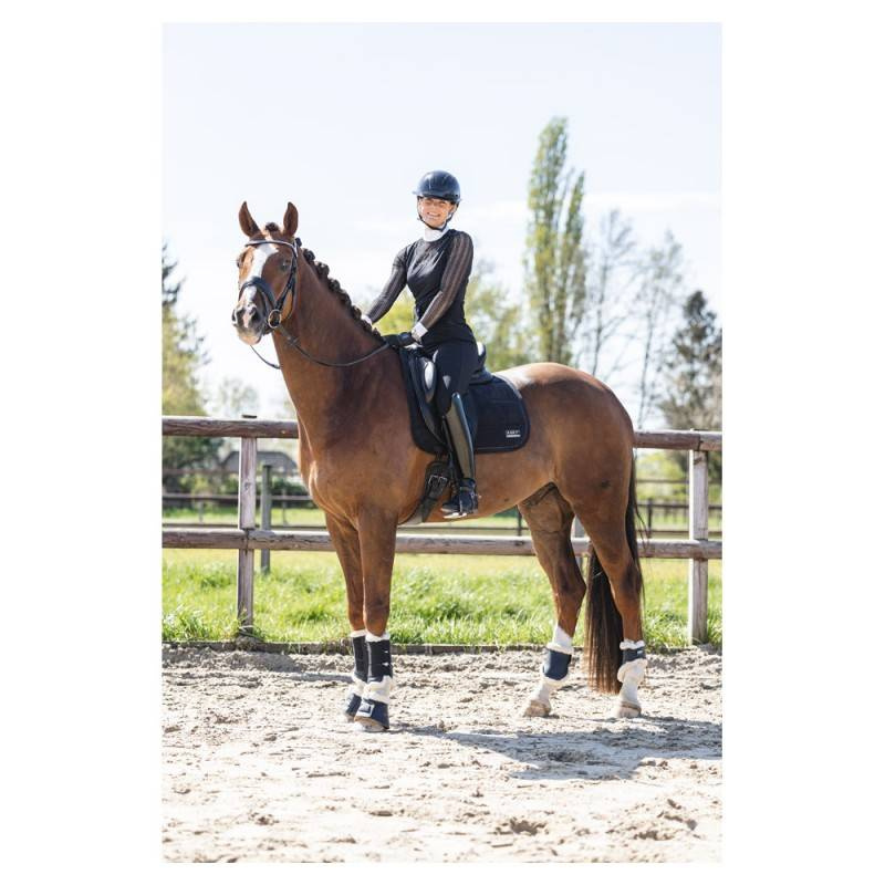 Krawędź ze sztucznego futra zapewnia Twojemu koniowi dodatkowy komfort. Sztuczne futro jest w 100% przyjazne dla zwierząt i ma takie same właściwości jak prawdziwe futro.