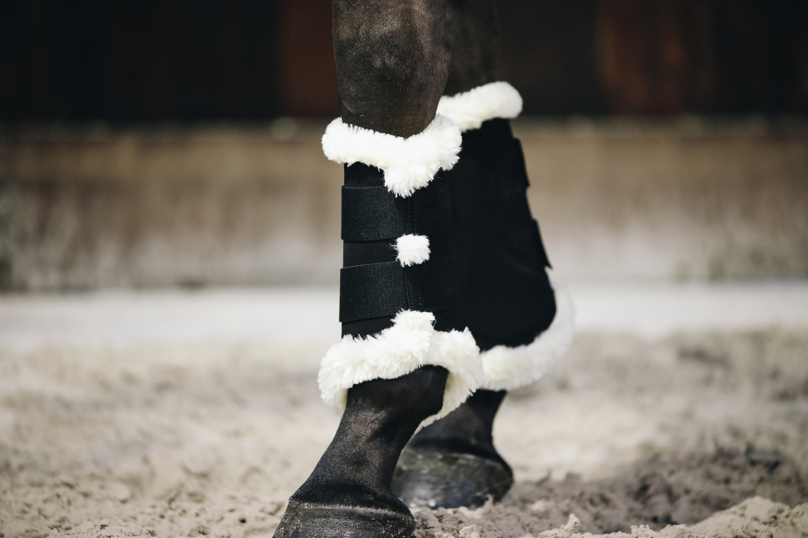 Wnętrze wyłożono syntetycznym futrem imitującym owczą wełnę, które doskonale amortyzuje uderzenia, chroni przed otarciami i równomiernie rozkłada nacisk. Takie wykończenie jest szczególnie polecane koniom z delikatną skórą, skłonnością do obtarć lub reakcji alergicznych.