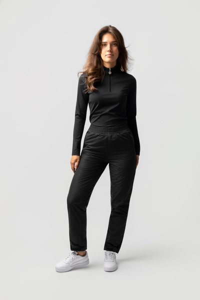 Wysoki stan z szerokim pasem gwarantuje idealne dopasowanie oraz dodatkową ochronę odcinka lędźwiowego przed zimnem.