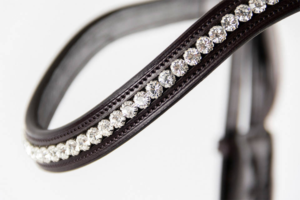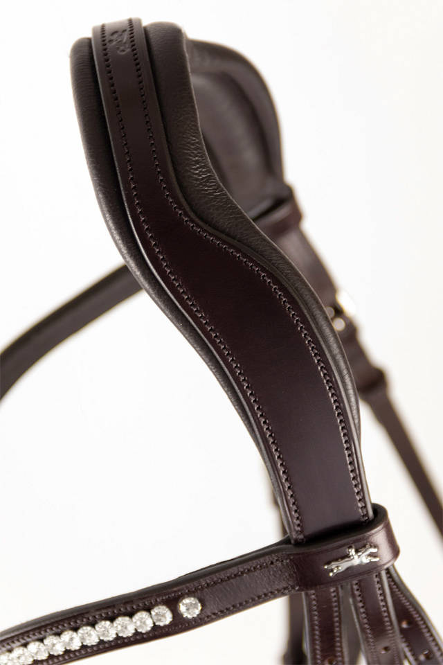 - Anatomiczne ogłowie ujeżdżeniowe - z podwójnymi paskami policzkowymi. Model ten oferuje maksymalny komfort dla konia. Zakrzywiony nachrapnik omija wrażliwy główny nerw twarzowy. Wykonane z wyjątkowo miękkiej skóry wysokiej jakości.