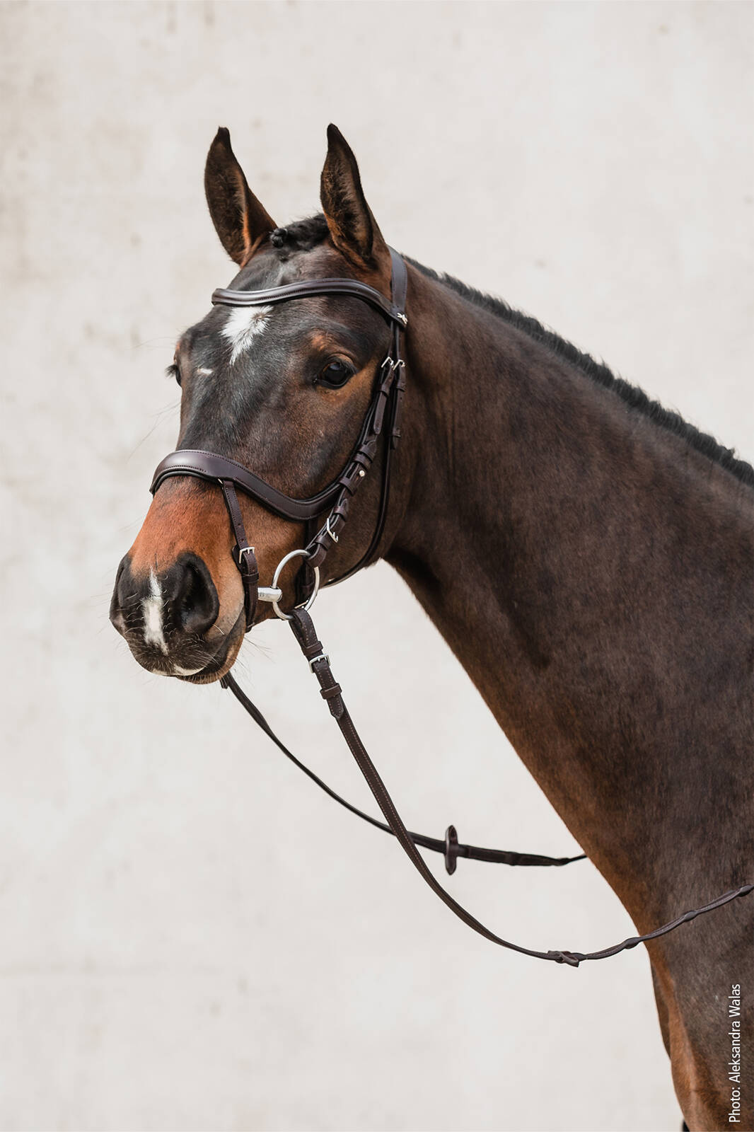 Dzięki innowacyjnemu ułożeniu, zapewnia koniowi najwyższy komfort noszenia: omija główny nerw twarzowy, ważne naczynia krwionośne i tętnice oraz zmniejsza nacisk na potylicę konia.