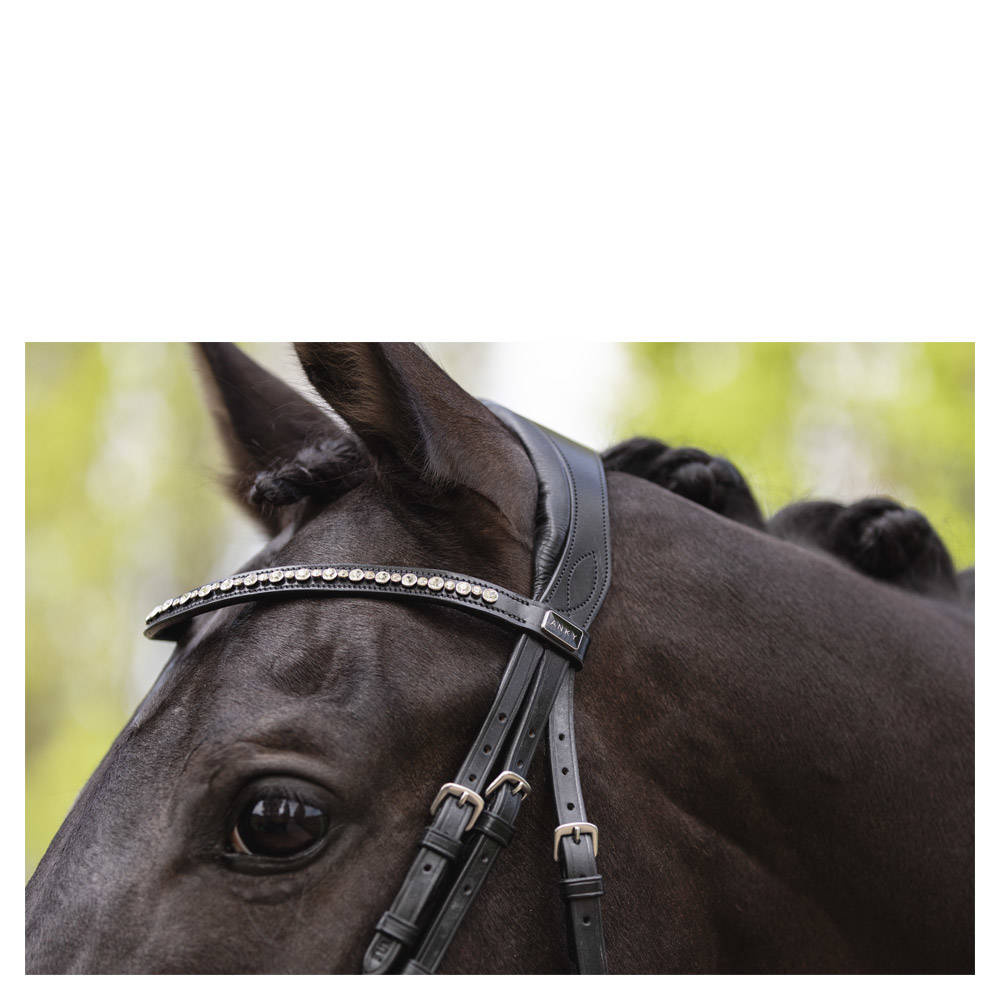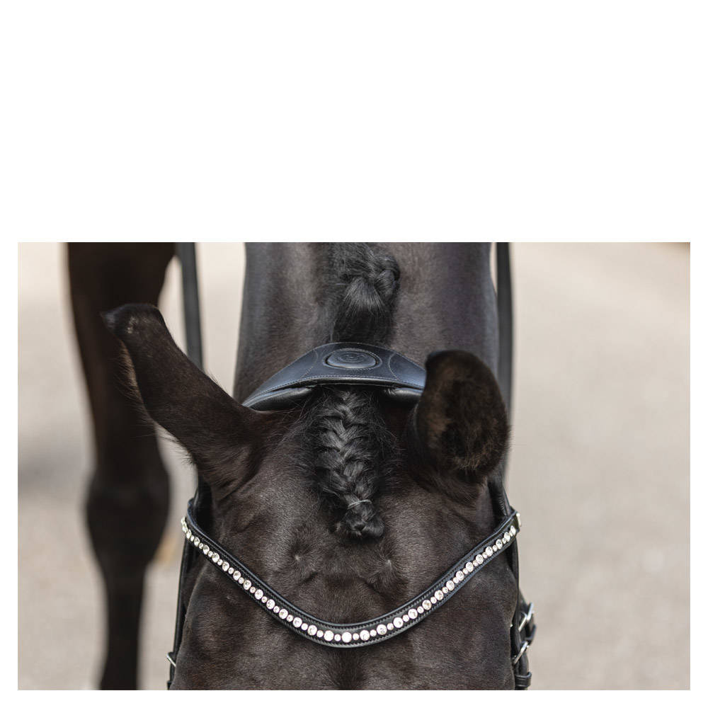 Lekko zakrzywiony naczółek jest modnie inkrustowany błyszczącymi imitacją diamentów Stellux™.