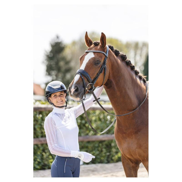 Część potyliczna jest wycięta przy uszach, aby zapewnić im dodatkową swobodę ruchu, nachrapnik jest wycięty po bokach, aby zmniejszyć nacisk na nos.