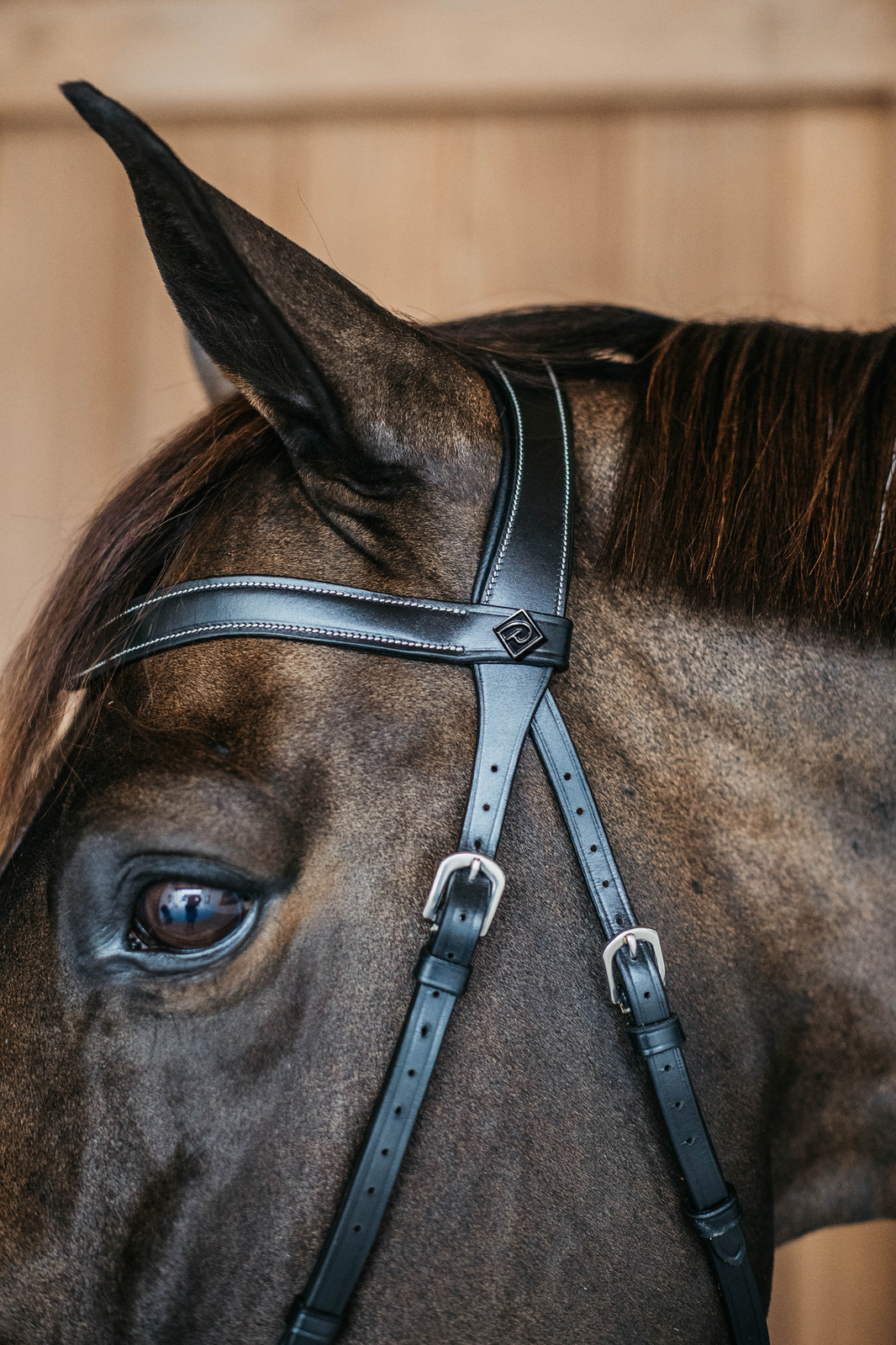 Innowacyjny nachrapnik z umieszczonymi na nim dwoma węzłami umożliwia dokładne sygnalizowanie pomocy, a dzięki anatomicznemu naczółkowi i miękkiej potylicy, idealnie dopasowuje się do głowy konia, omijając wrażliwe miejsca i nie wywierając nacisku na nerwy.