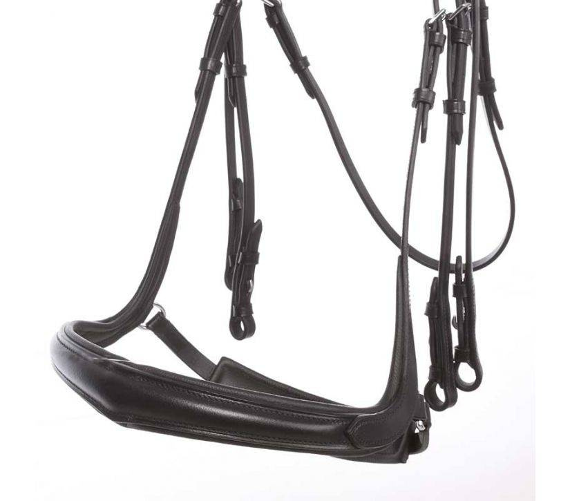 Ogłowie z anatomicznym nachrapnikiem, wykonane z wysokiej jakości, miękkiej skóry.