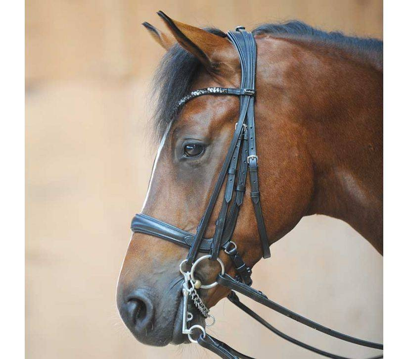 W komplecie z wodzami oraz dodatkowym paskiem do munsztuku.