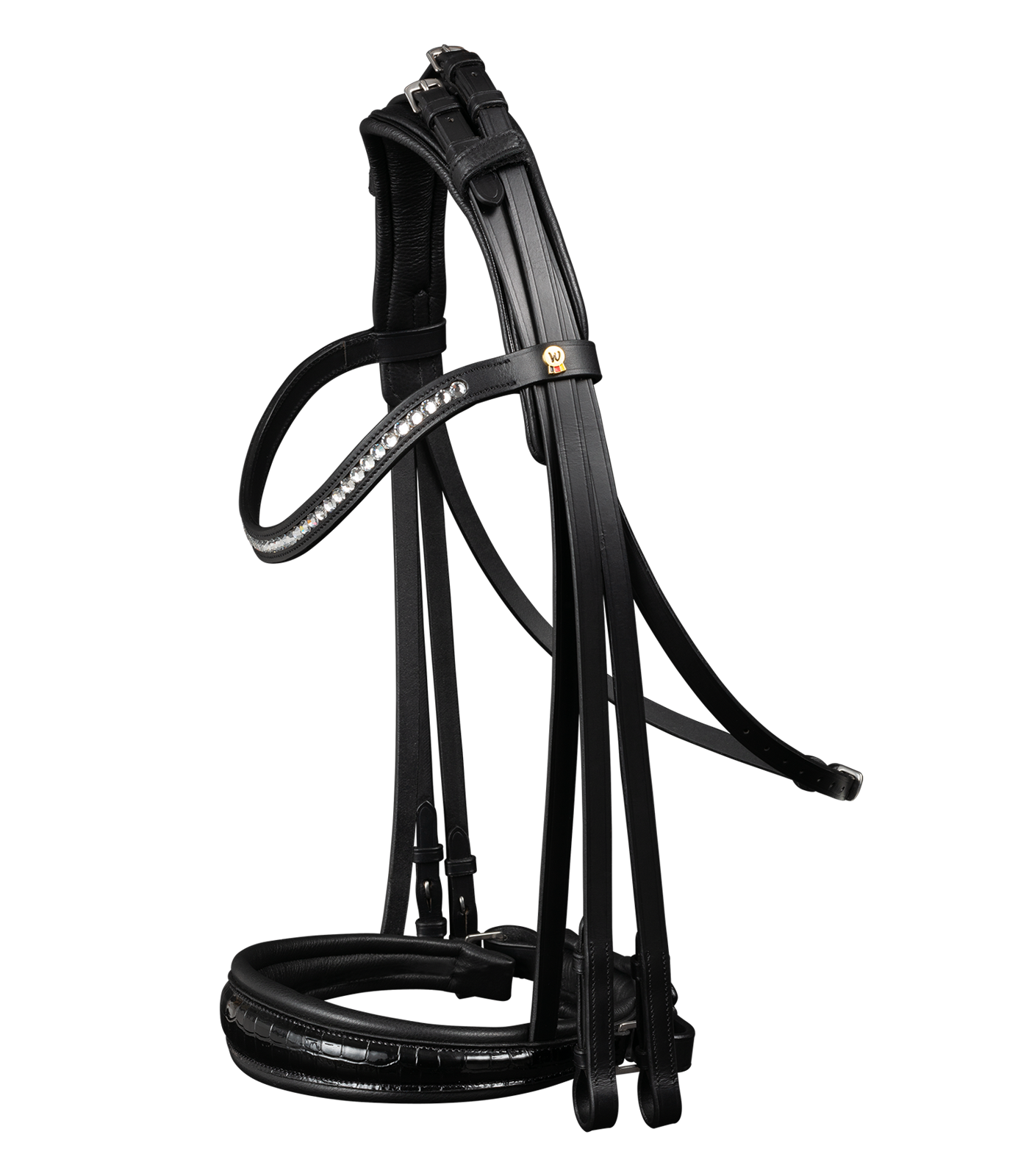 Ogłowie munsztukowe z kolekcji S-Line, które łączy w sobie elegancję z funkcjonalnością, zapewniając wyjątkowy komfort dla konia oraz estetyczny wygląd.