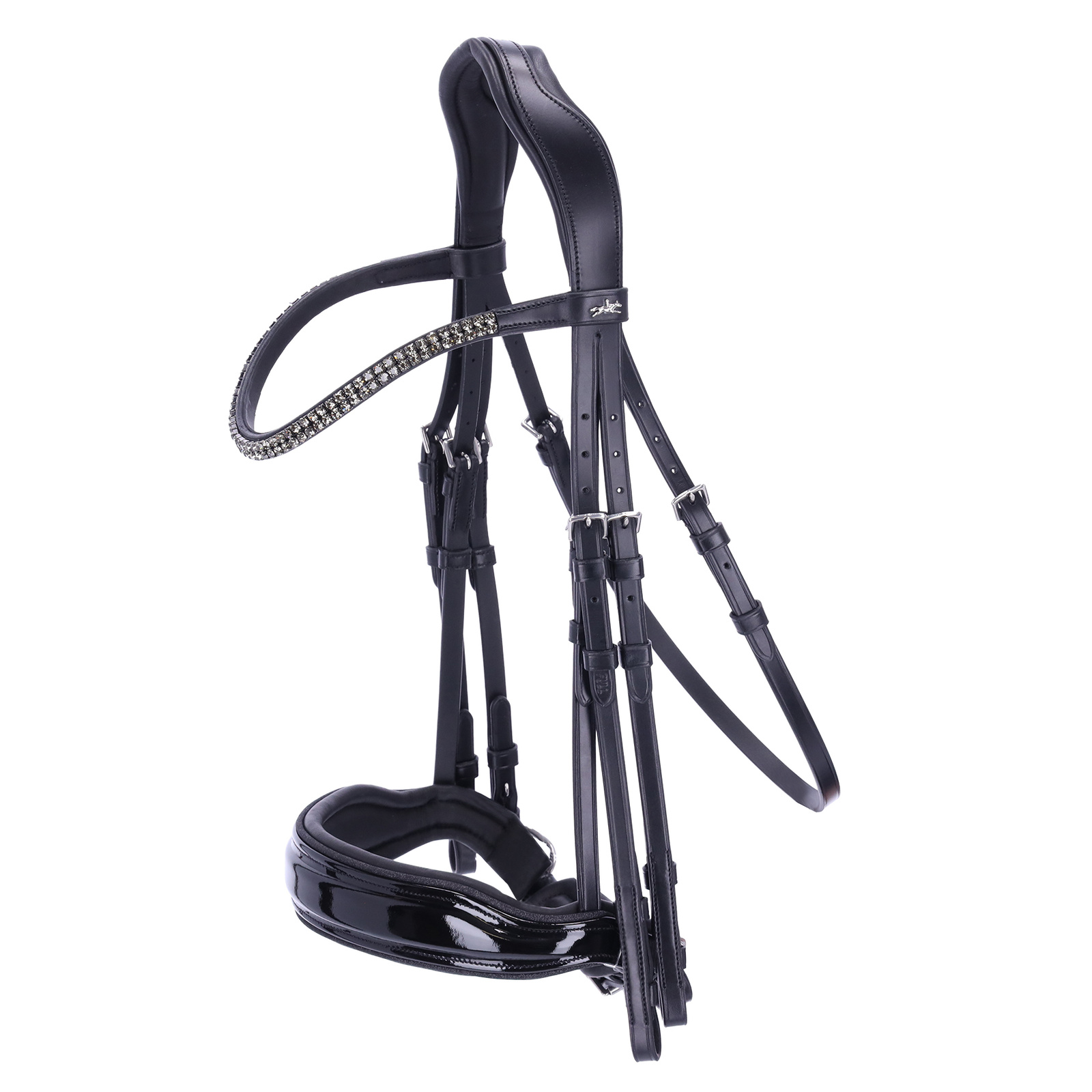 Całość dopełnia smukły naczółek ozdobiony dwiema liniami kwadratowych kryształów, który dodaje ogłowiu klasy i doskonale prezentuje się na czworoboku konkursowym.