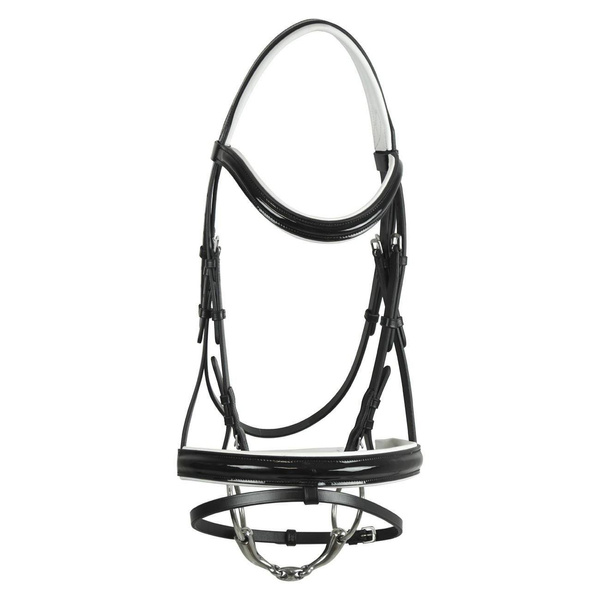 Nachrapnik, naczółek oraz pasek potyliczny miękko podszyte skórą w białym kolorze.