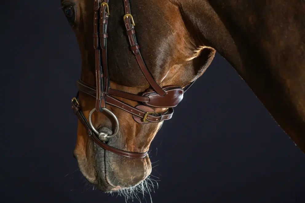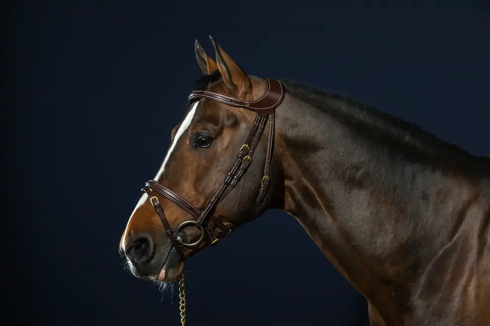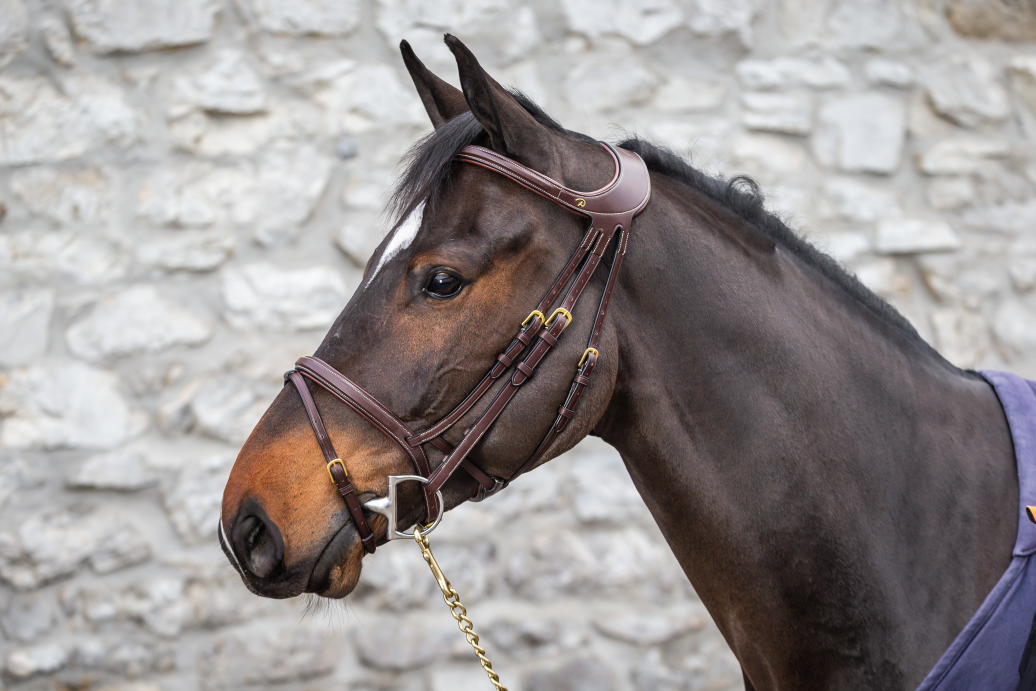 Unikalny system zapięcia podgardla połączony z nachrapnikiem zapewnia, że ogłowie nie przesuwa się do przodu.