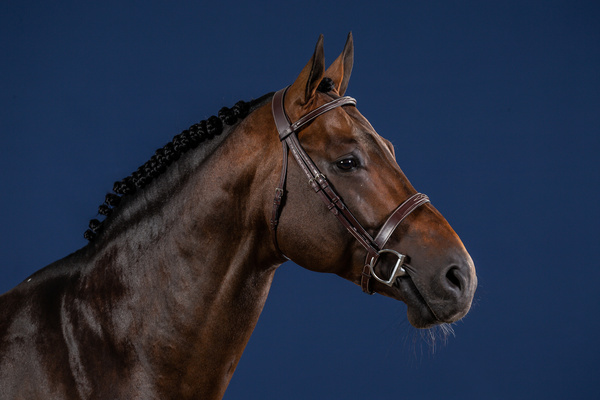 Ogłowie z klasycznym, lekko podwyższonym nachrapnikiem angielskim.
