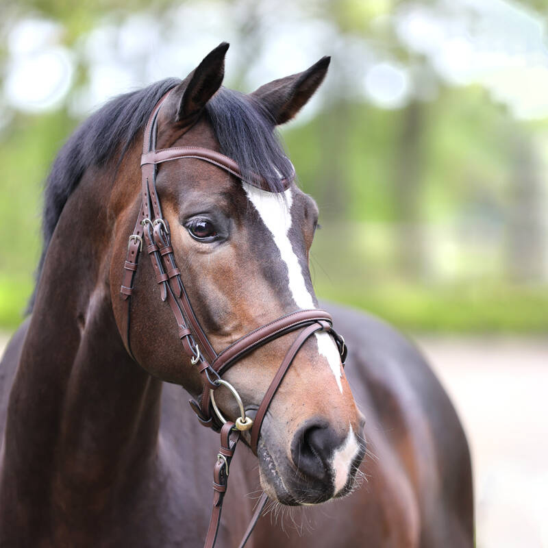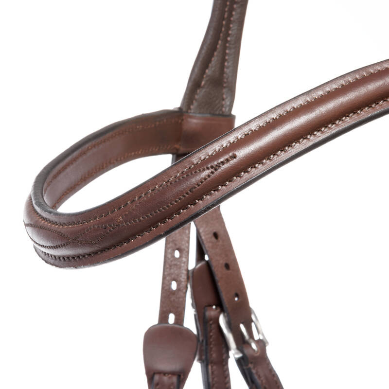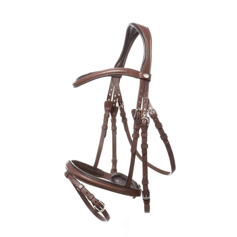 Wyposażone w regulowany z dwóch stron nachrapnik angielski z paskiem krzyżowym.