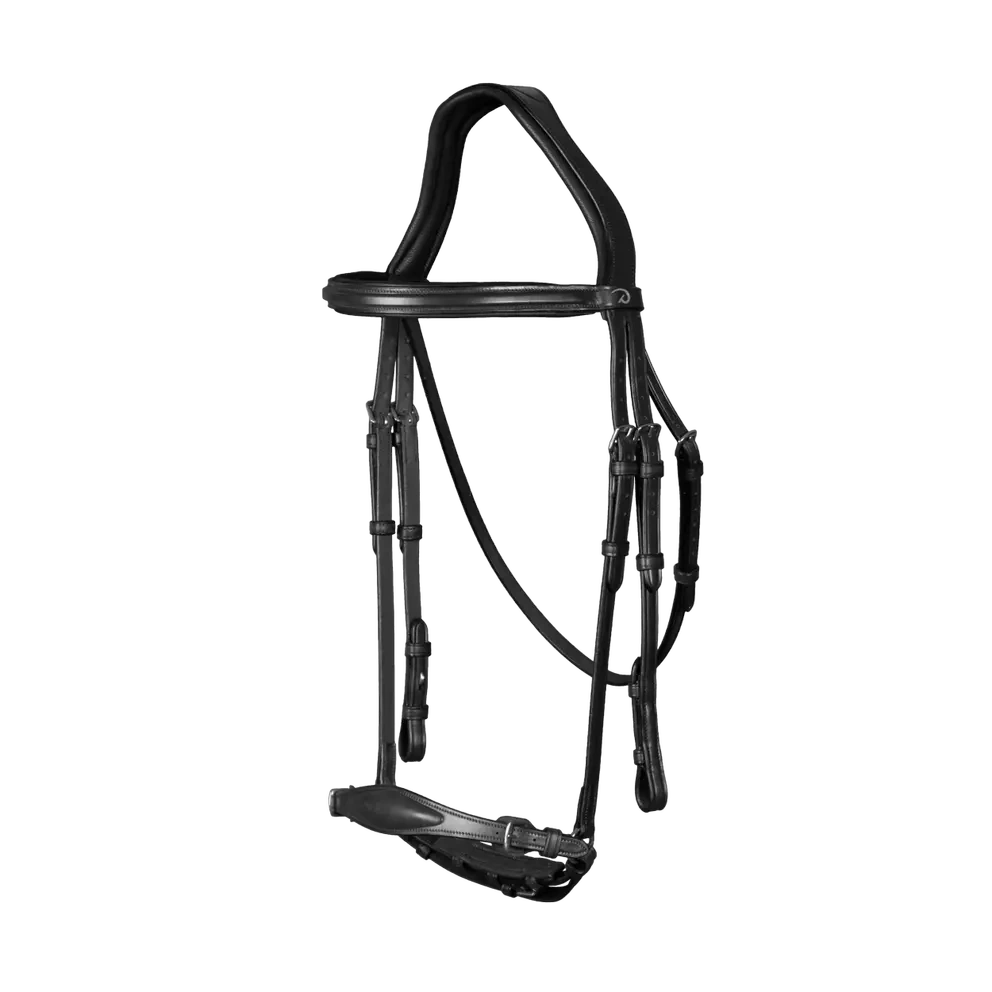 - Ogłowie z nachrapnikiem hanowerskim. Z kolekcji " New English Collection" - wykonane z najlepszej jakościowo angielskiej skóry, miękko podszyte. Wykończone tonalnymi szwami i okuciami w srebrnym kolorze.