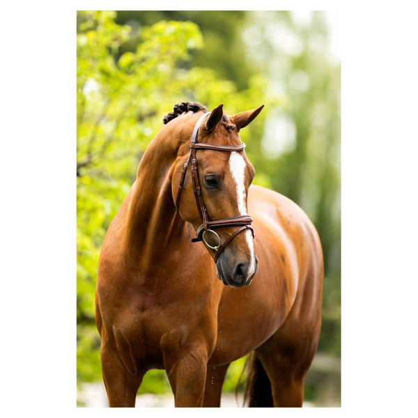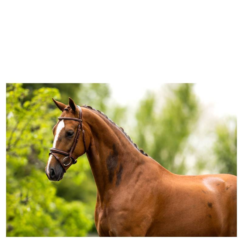 Posiada prosty naczółek oraz szerszy nachrapnik, które zostały ozdobione kremowymi szwami.