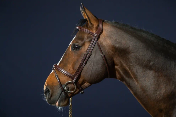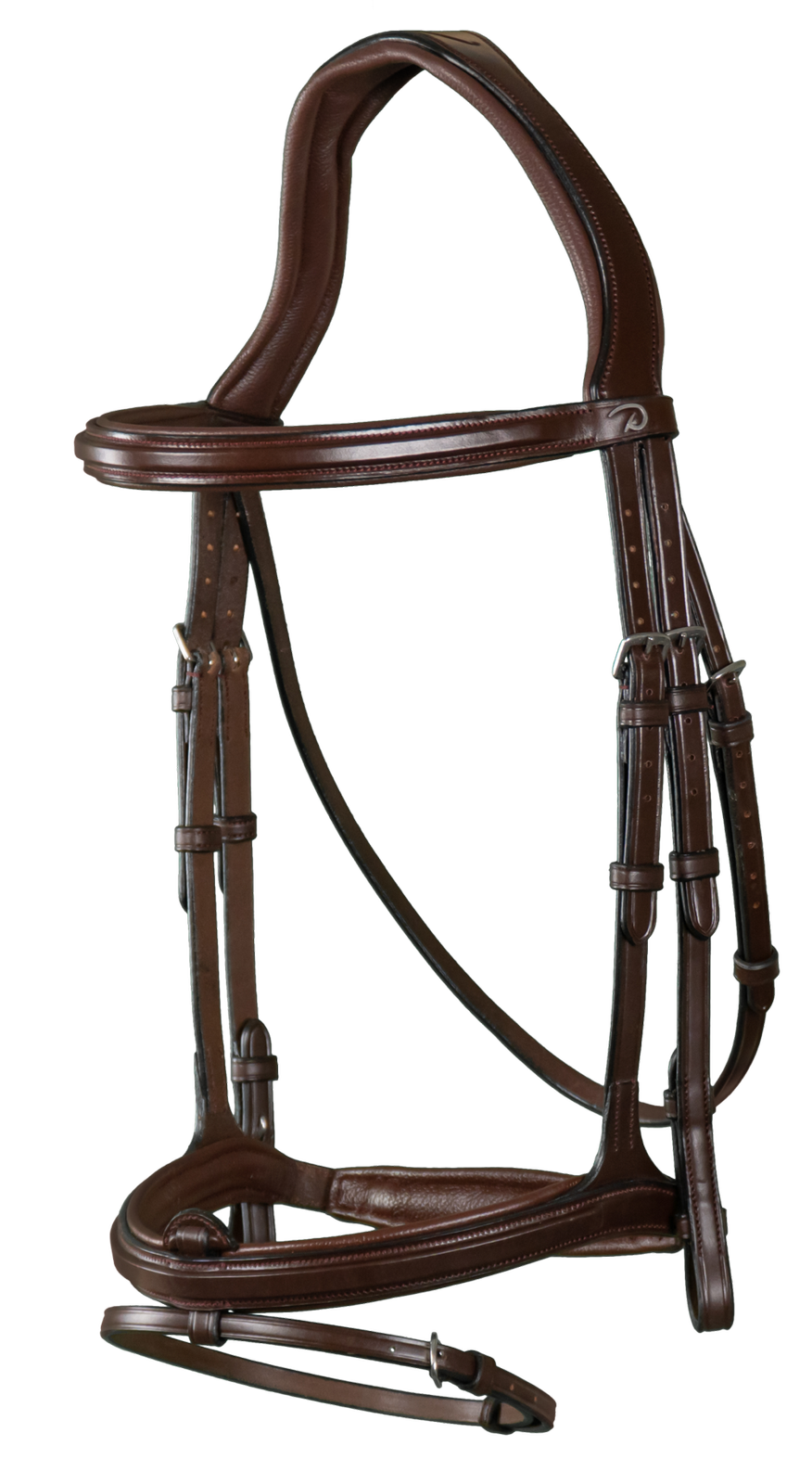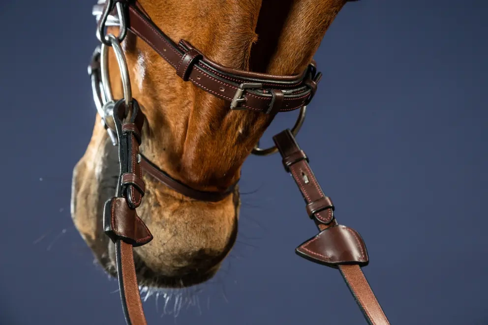 • Ogłowie z nachrapnikiem angielskim, kombinowanym z całkowicie zdejmowanym paskiem krzyżowym.
