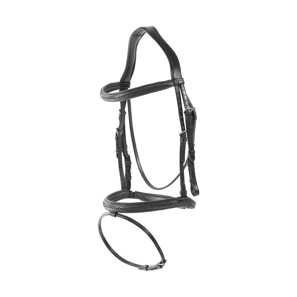 • Wyjątkowe ogłowie z plecionym nachrapnikiem i naczółkiem.