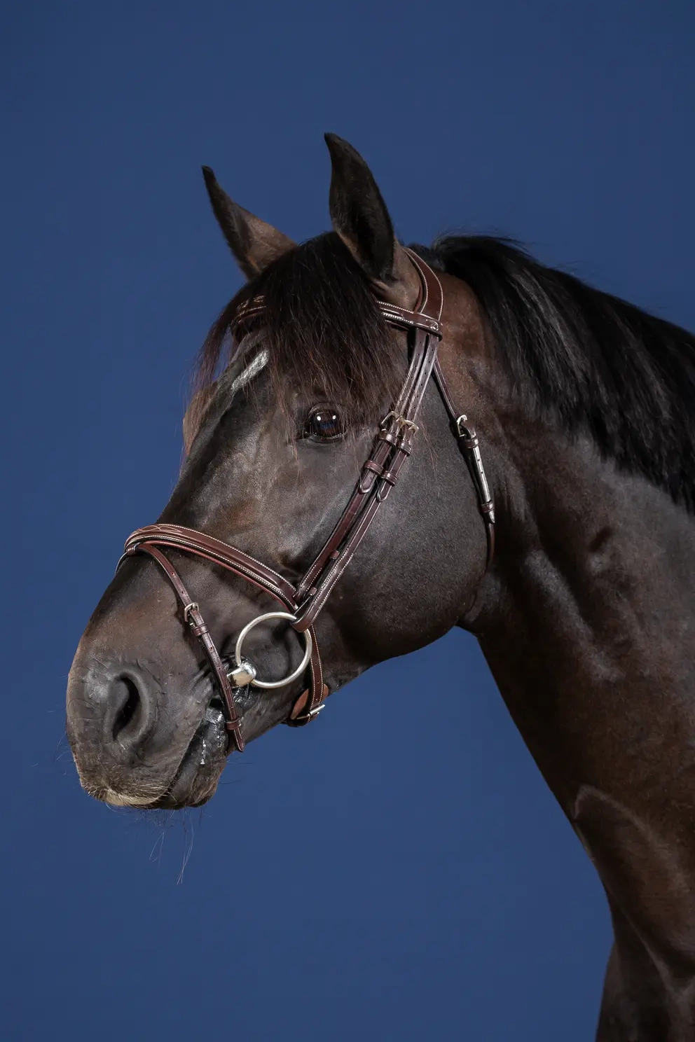 - Ogłowie z nachrapnikiem angielskim, kombinowanym z całkowicie zdejmowanym paskiem krzyżowym.