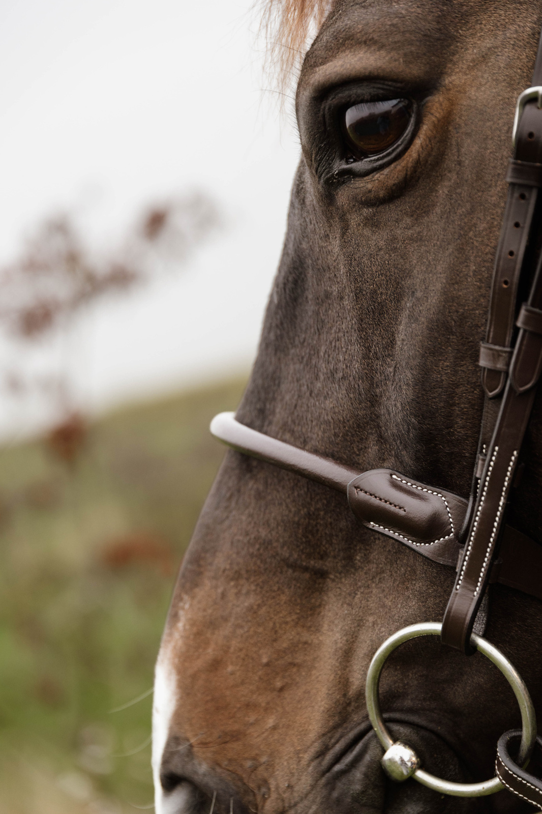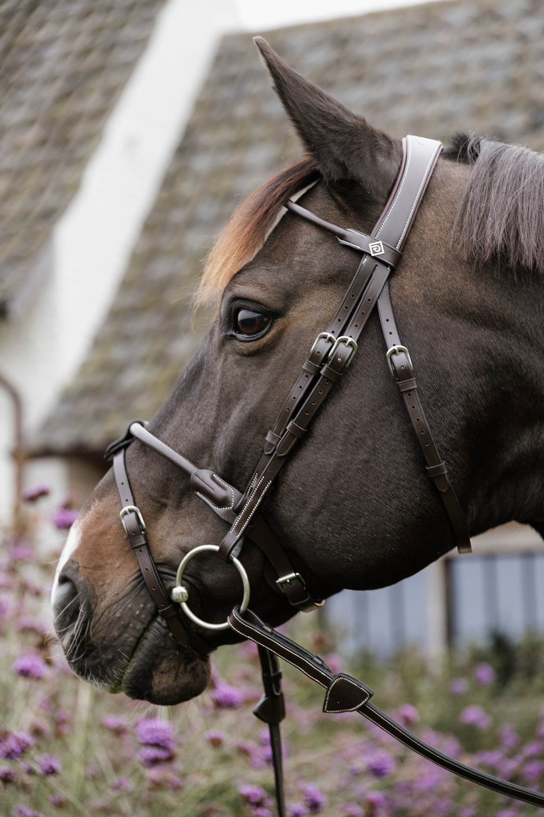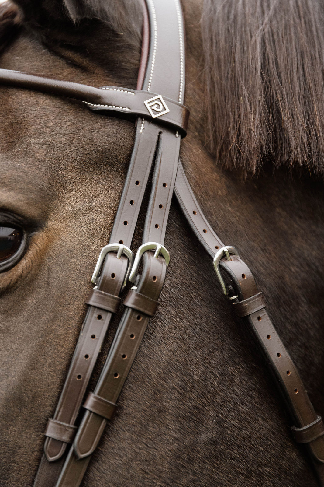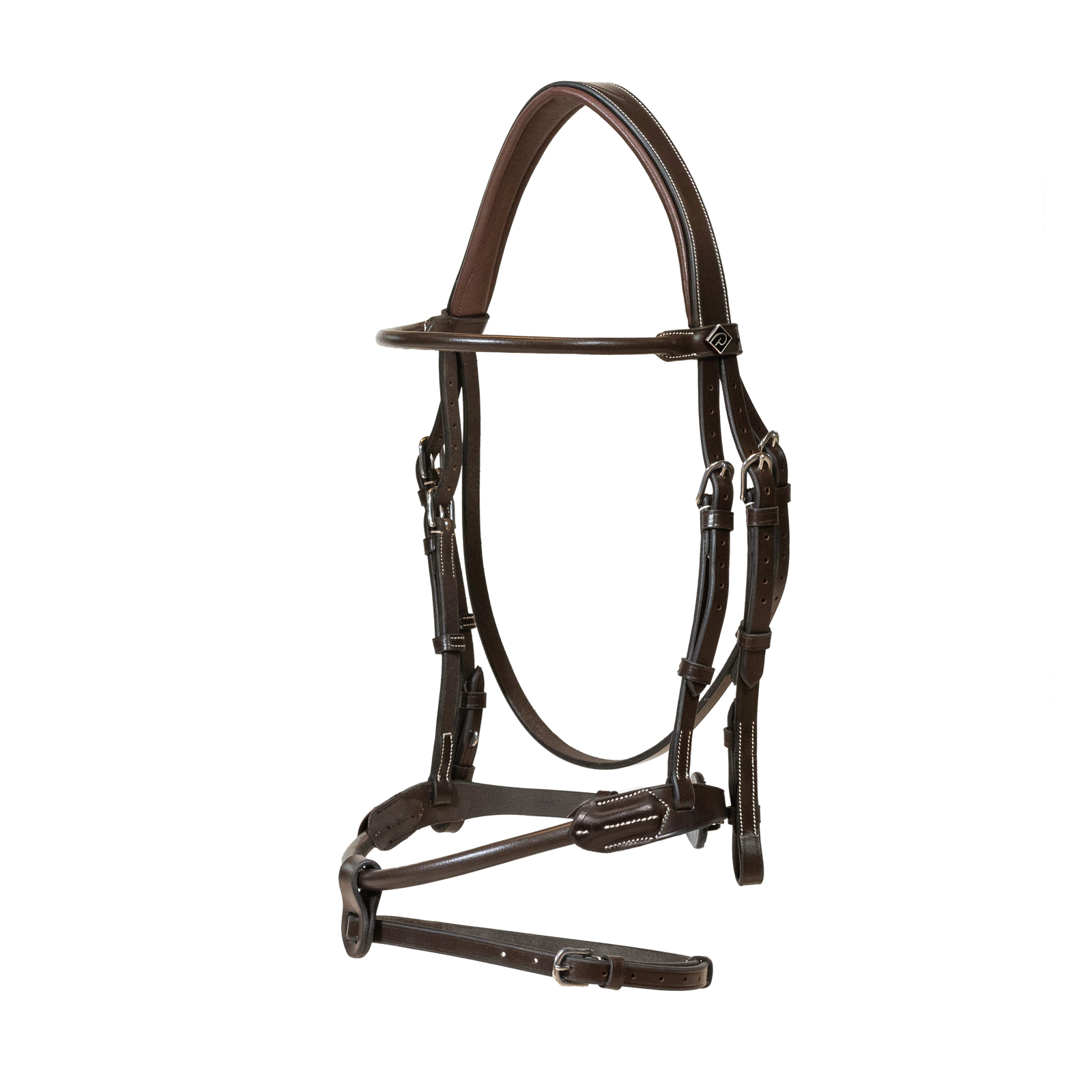 Posiada pasek krzyżowy, który można całkowicie wypiąć, co umożliwia dopasowanie ogłowia do indywidualnych potrzeb konia.
