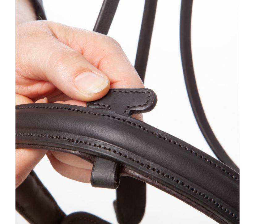 Pasek podgardlany oraz paski do wędzidła są zapinane za pomocą karabińczyka. Pozwala to na szybkie zapięcie ogłowia oraz bezproblemową wymianę wędzidła.
