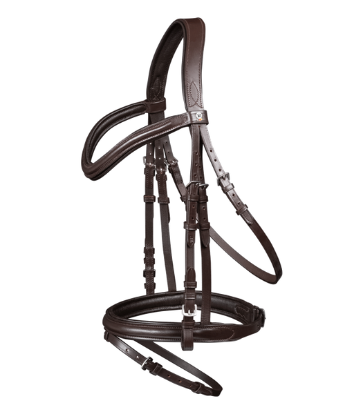 Klasyczne i funkcjonalne ogłowie z nachrapnikiem angielskim kombinowanym z paskiem krzyżowym.