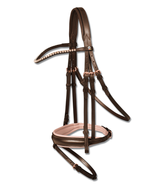 • Ogłowie z okuciami w kolorze różowego złota.