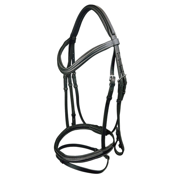 Paski policzkowe oraz wodze zapinane są na haczyki.