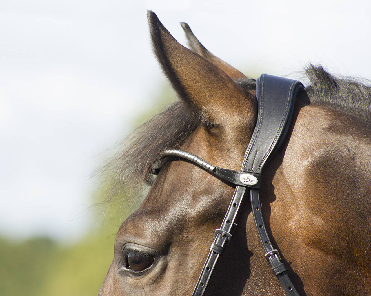 Ogłowie specjalnie zaprojektowane tak, by ominąć nerwy na głowie konia i równomiernie rozłożyć nacisk.