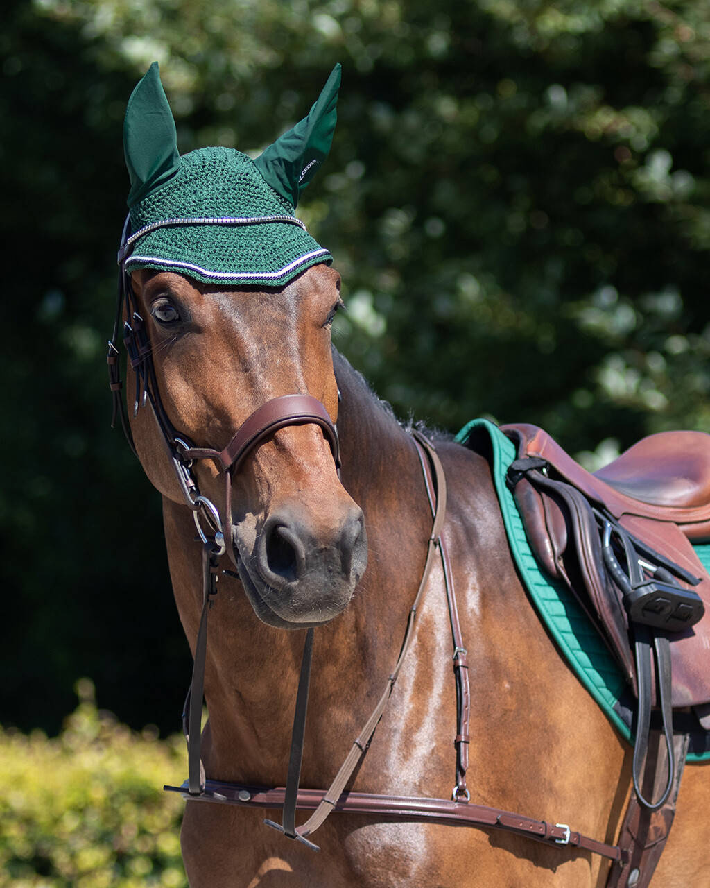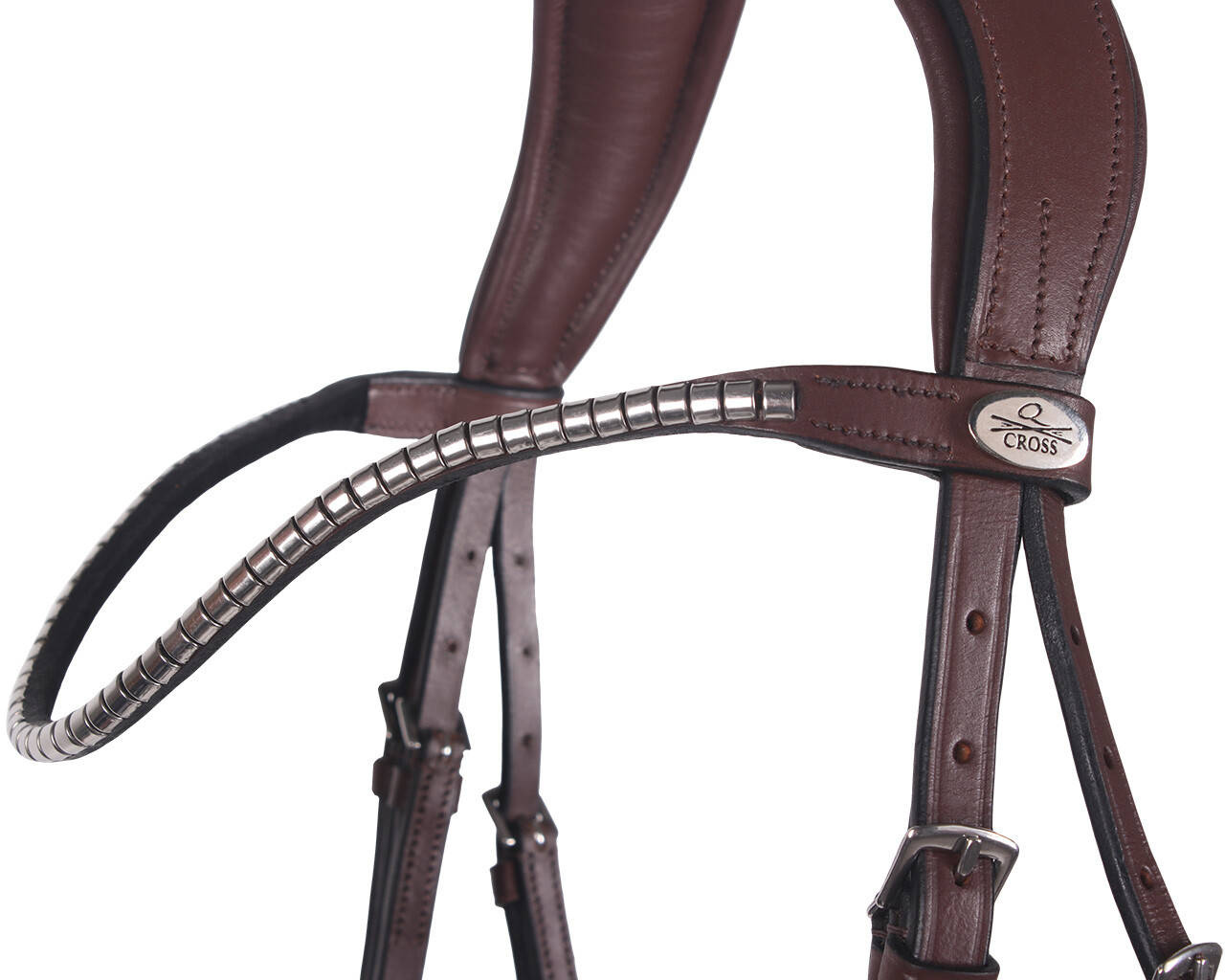 Ogłowie specjalnie zaprojektowane tak, by ominąć nerwy na głowie konia i równomiernie rozłożyć nacisk.
