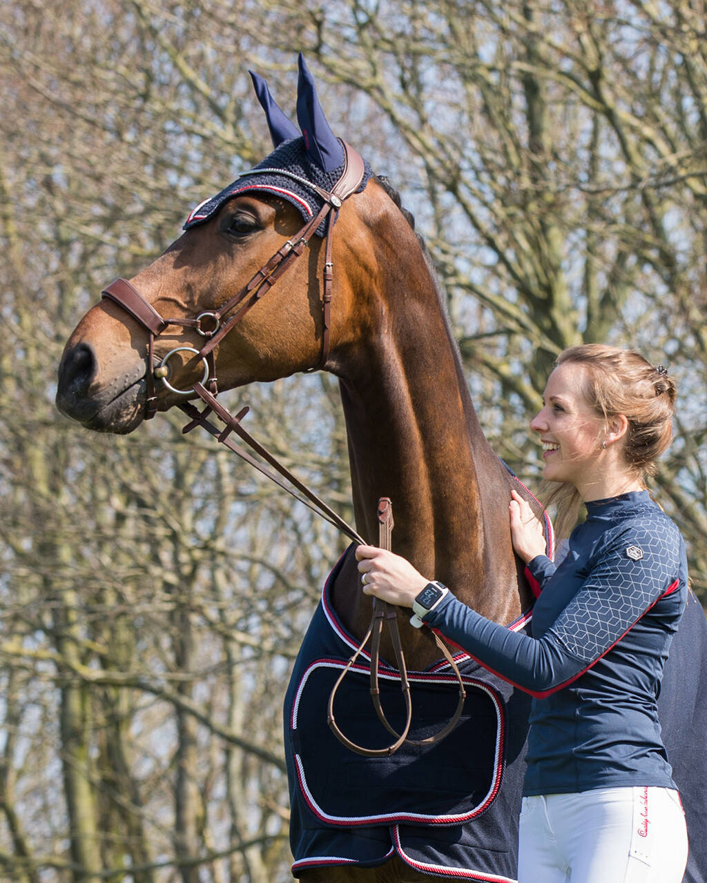- Ogłowie specjalnie zaprojektowane tak, by ominąć nerwy na głowie konia i równomiernie rozłożyć nacisk.