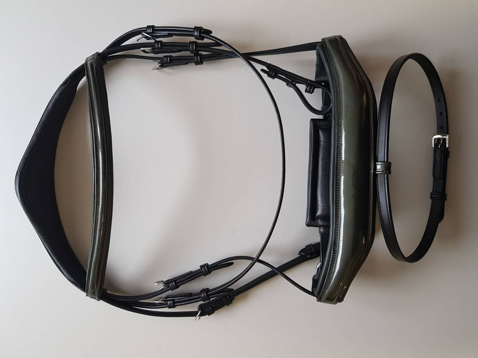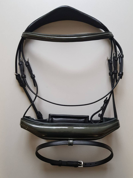 Szeroki, szwedzki nachrapnik jest połączony z dwóch stron regulowanymi paskami.