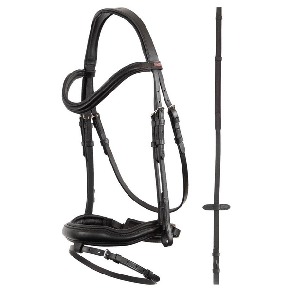 - Anatomiczne ogłowie z miękko wyściełaną potylicą i nachrapnikiem. Posiada szeroki nachrapnik szwedzki.