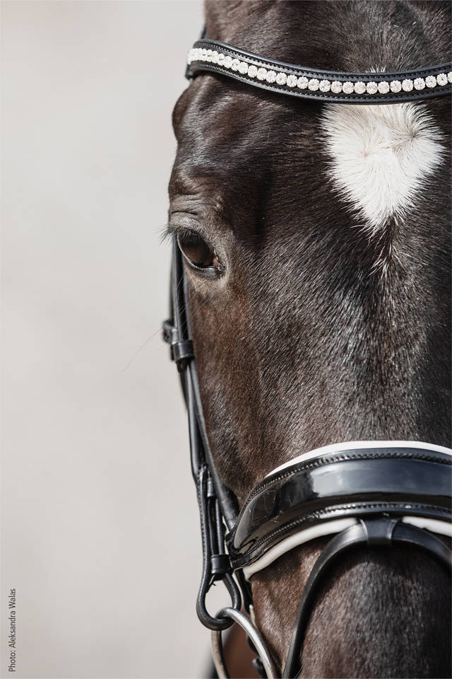 Zmniejsza nacisk we wrażliwych obszarach, takich jak kości policzkowe i potylica oraz pozwala na nieskrępowany ruch uszu konia.