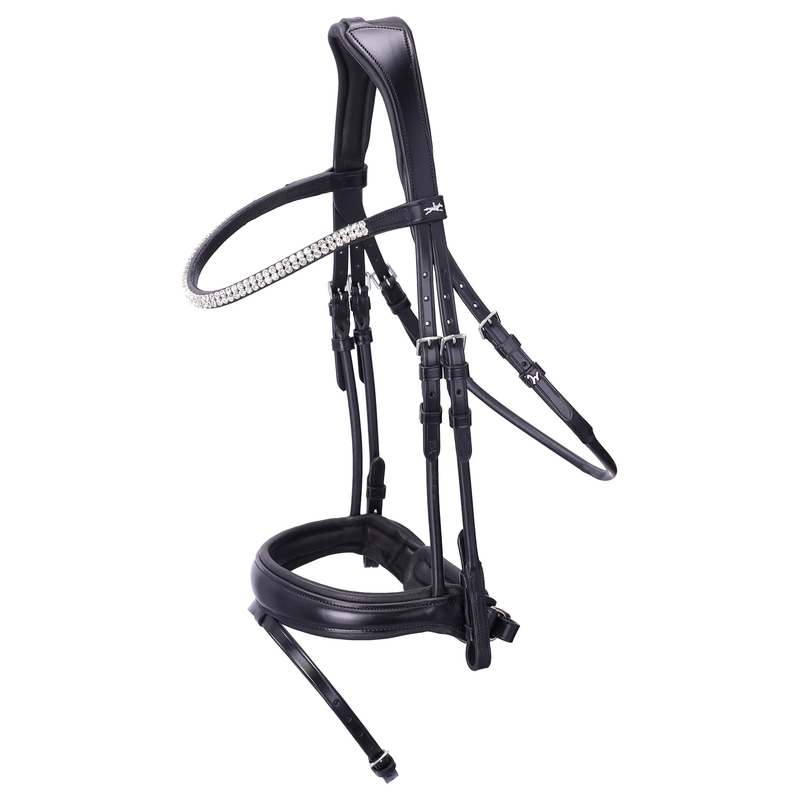 Elegancki, smukły naczółek ozdobiony dwiema liniami kwadratowych kryształów nadaje całości subtelnie luksusowy charakter, idealnie wpisujący się w estetykę ujeżdżenia.Ogłowie dostarczane jest w komplecie z ekskluzywną torbą na ogłowie z kolekcji Isabell Werth, która chroni sprzęt podczas przechowywania i transportu, podkreślając jego luksusowy charakter.