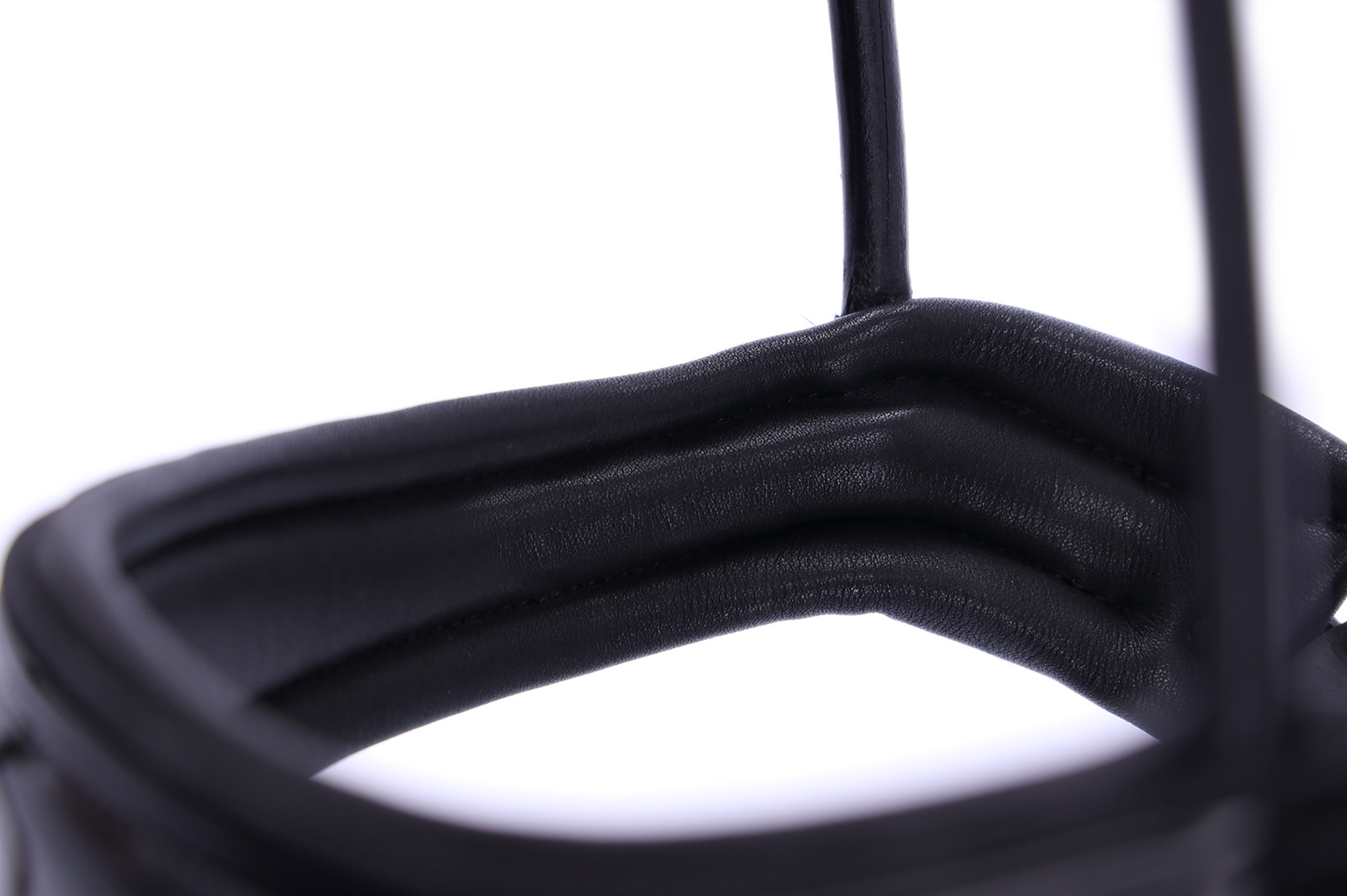 Ogłowie wykonane jest z wysokiej jakości skóry okrągło szytej (zawijanej), co zapewnia wyjątkowo gładkie ułożenie wszystkich pasków przy głowie konia. Takie wykończenie eliminuje ostre krawędzie i szwy, które mogłyby powodować punktowy nacisk lub otarcia, a jednocześnie nadaje ogłowiu bardzo elegancki, czysty wizualnie wygląd. Skóra jest miękka, elastyczna i z czasem jeszcze lepiej dopasowuje się do anatomii konia.
