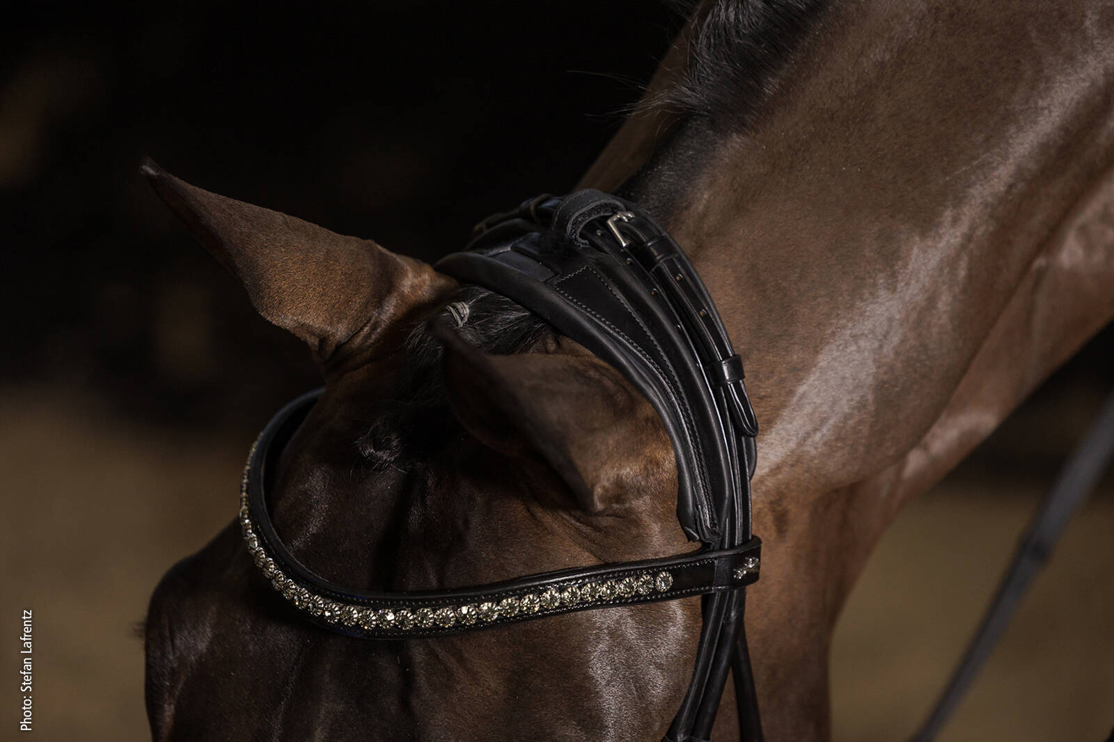 Innowacyjna potylica pozwala na jeszcze lepsze dopasowanie ogłowia do głowy konia.