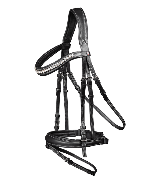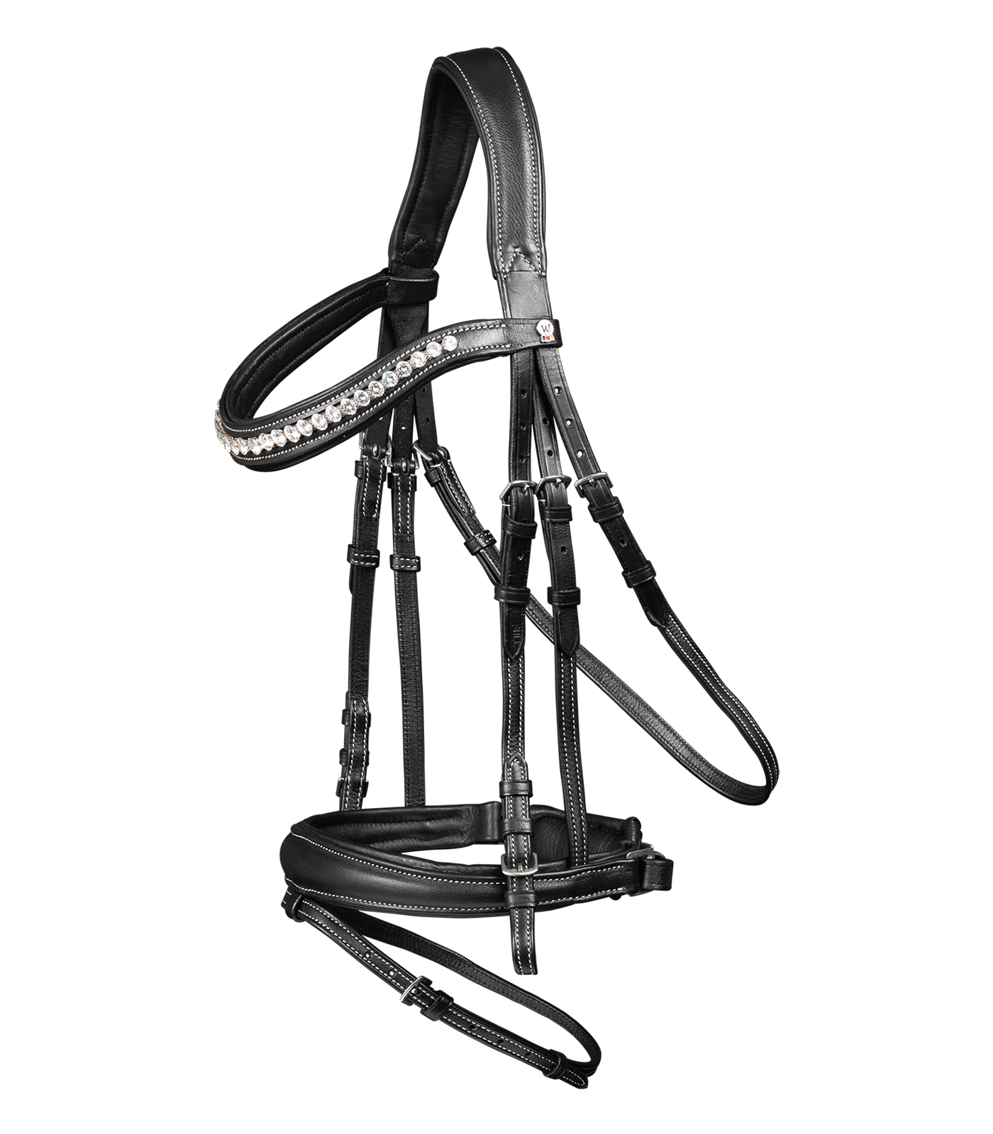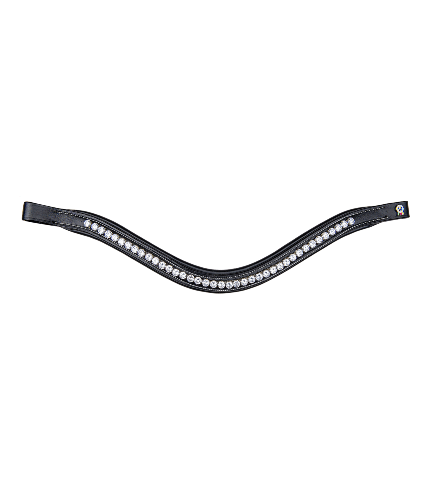Naczółek ma delikatnie zakrzywionym kształcie i jest ozdobiony kamieniami, dzięki czemu nadaje ogłowiu eleganckiego wyglądu.