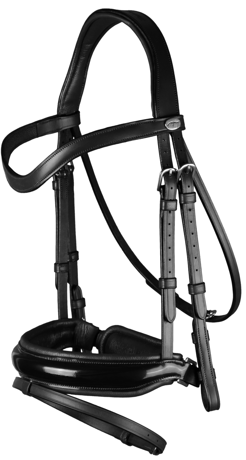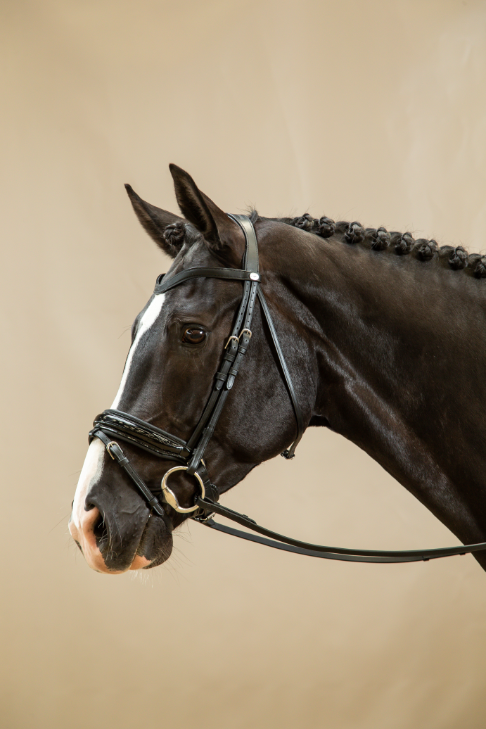 • Piękne, ujeżdżeniowe ogłowie z lakierowanym, szerokim nachrapnikiem.