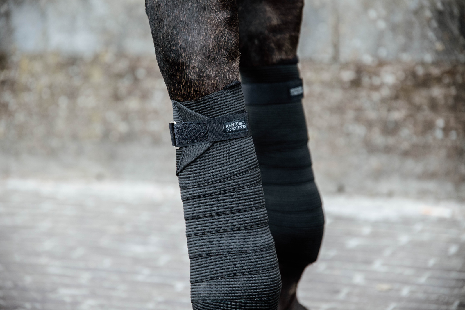 Elastyczna tkanina zapewnia szeroki zakres rozciągliwości, dzięki czemu bandaże są łatwe do zakładania i dopasowywania, nawet dla osób mniej doświadczonych. Wysoka sprężystość materiału sprawia, że idealnie przylegają do nogi, a odpowiednio wykonane bandażowanie zmniejsza ryzyko obciążeń spowodowanych przeciążeniem, mikrodrganiami i wstrząsami podczas ruchu. Zastosowanie bandaży może wpływać na poprawę komfortu konia, a także zmniejszać napięcie w tkankach po wysiłku.