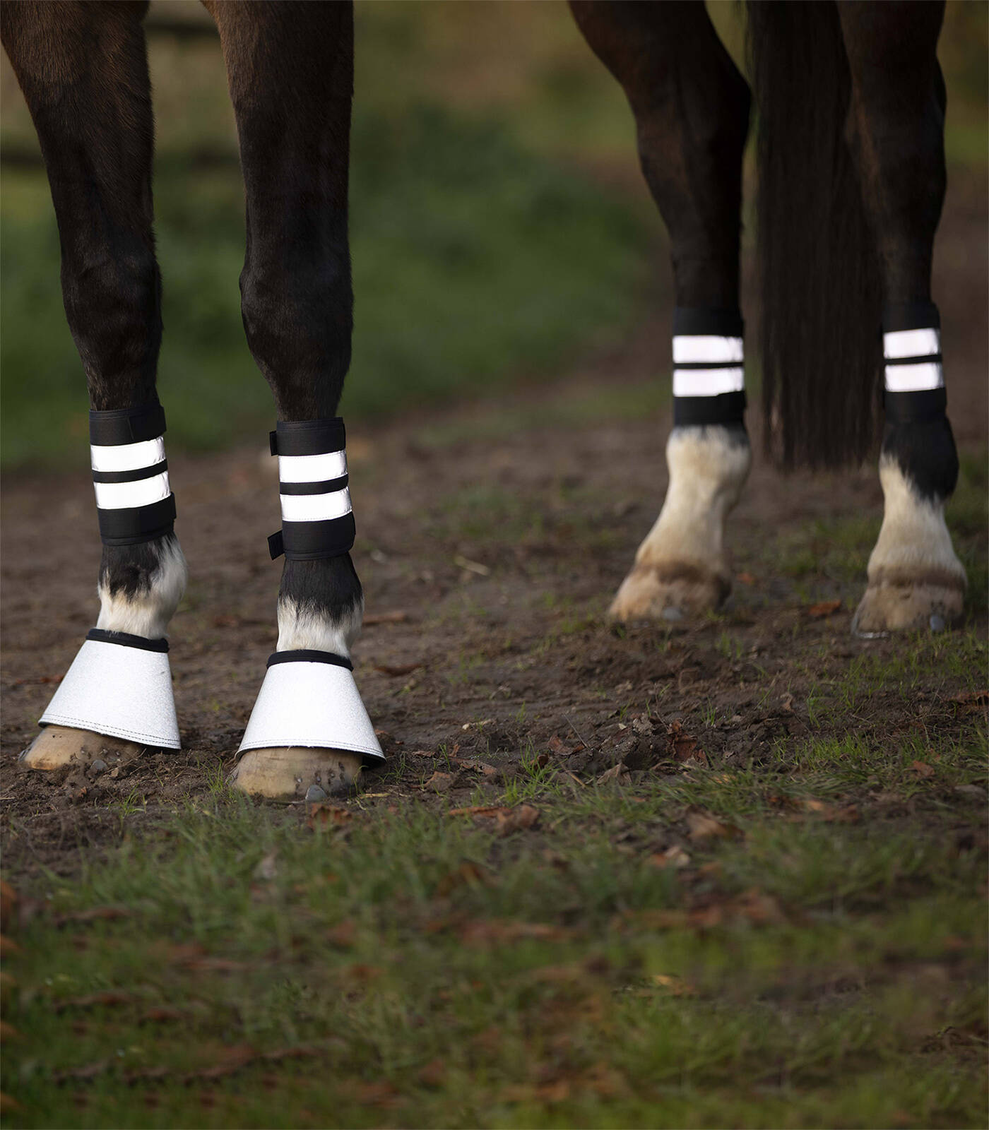 Wyposażone w dwa szerokie paski odblaskowe znacząco poprawiają widoczność konia i jeźdźca.