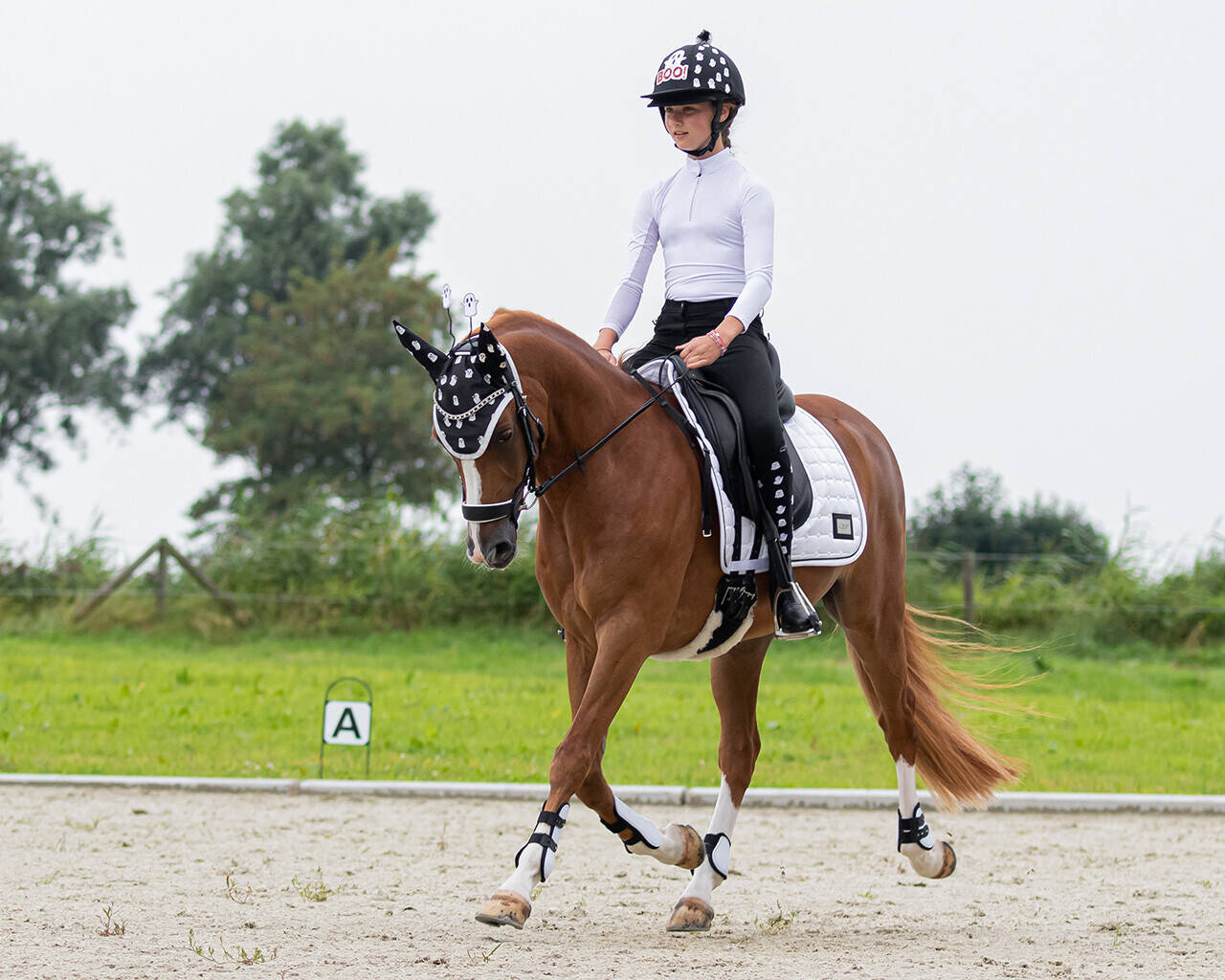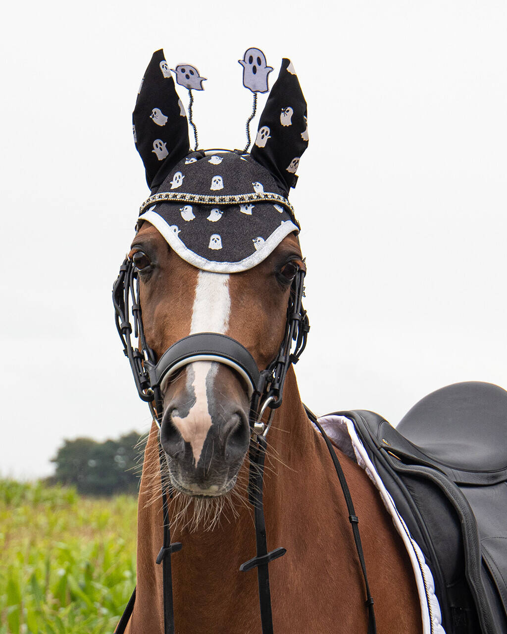 • Sprężysta ozdoba na ogłowie lub kantar, przypinana na rzep.