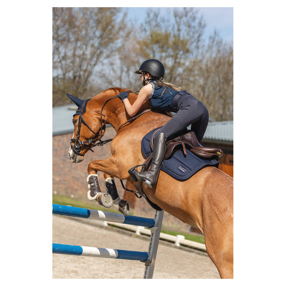 Antypoślizgowe litery na boku oraz podwójna pętla przy popręgu zapewniają stabilną pozycję siodła.